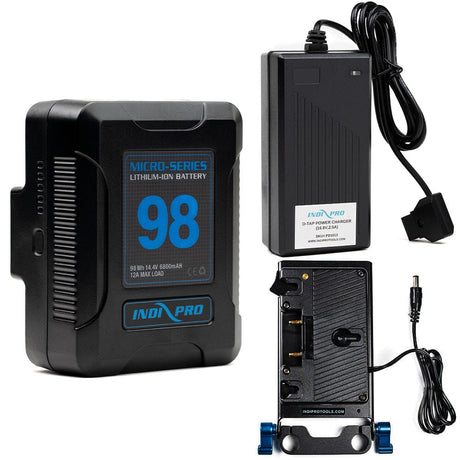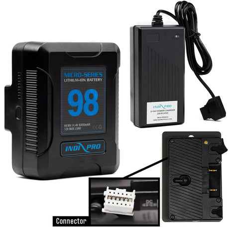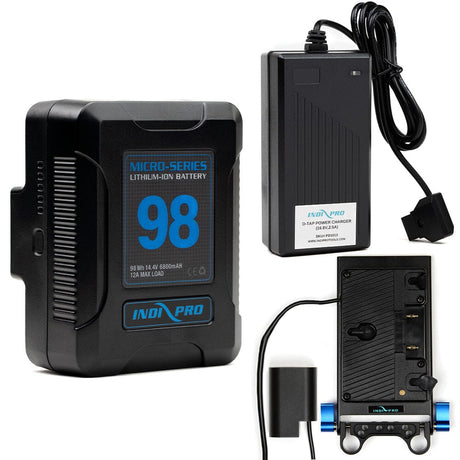 Indipro Micro Series 98Wh Gold Mount Battery, Charger & Gold Mount Plate to Sony NP-F Battery Bundle
