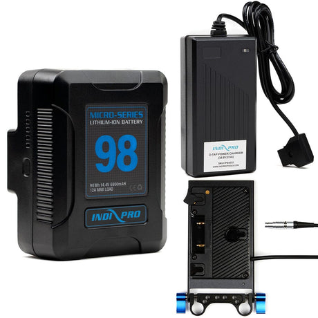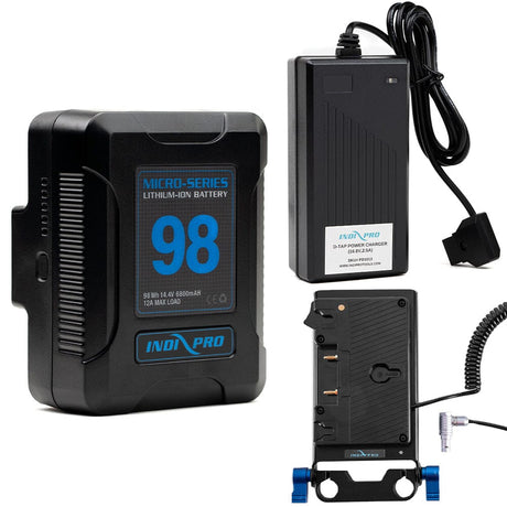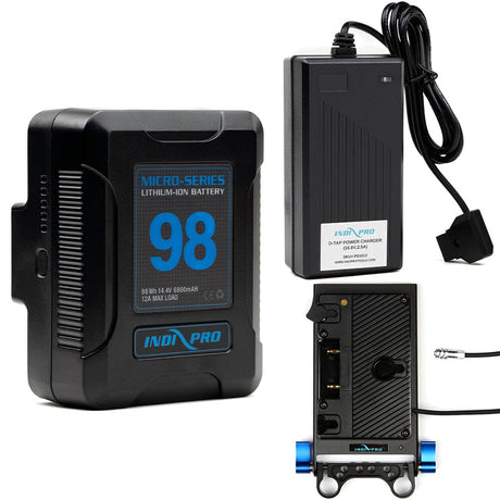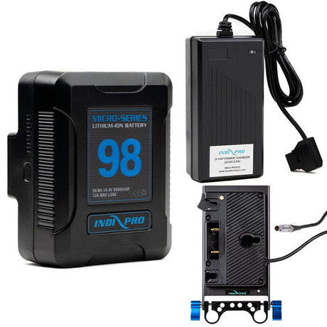 Indipro Micro Series 98Wh Gold Mount Battery, Charger & Gold Mount Plate for RED KOMODO Bundle