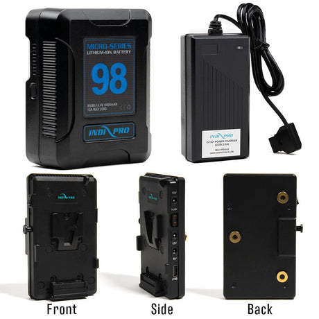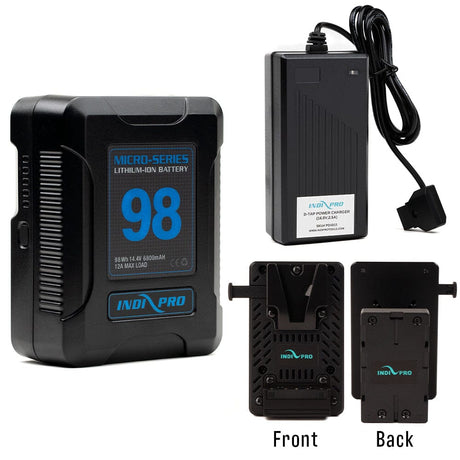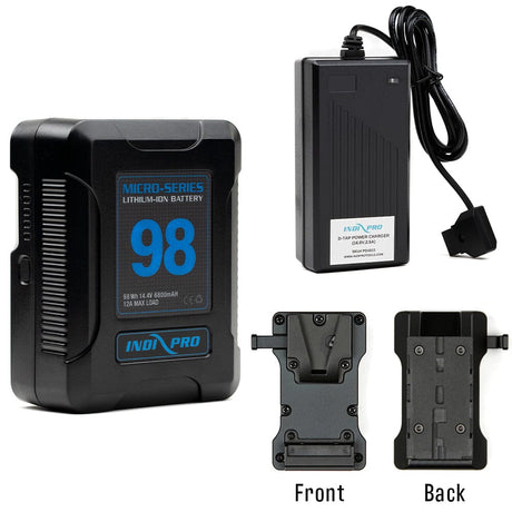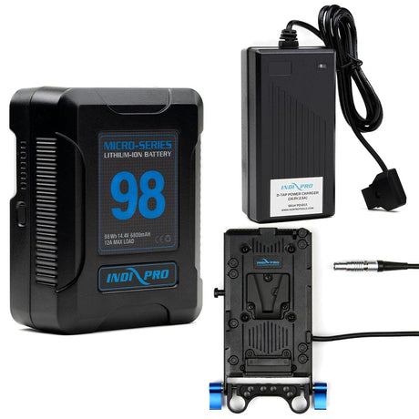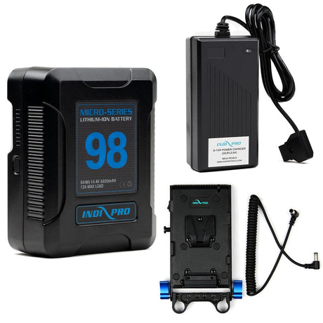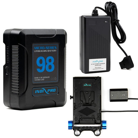 Indipro Micro Series 98Wh V-Mount Battery, Charger & V-Mount Plate to Sony NP-F Battery Bundle