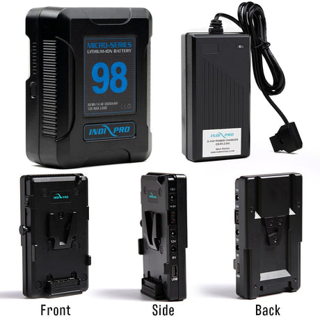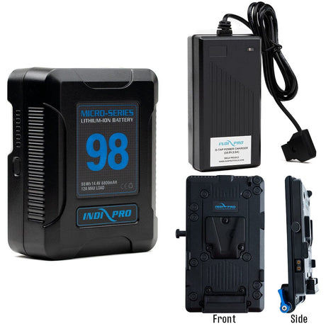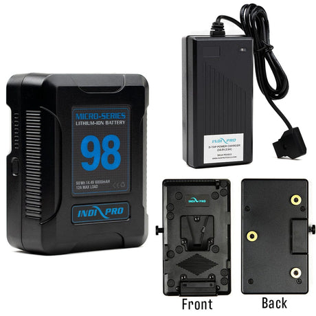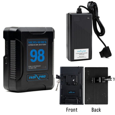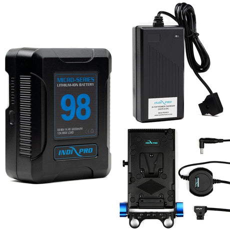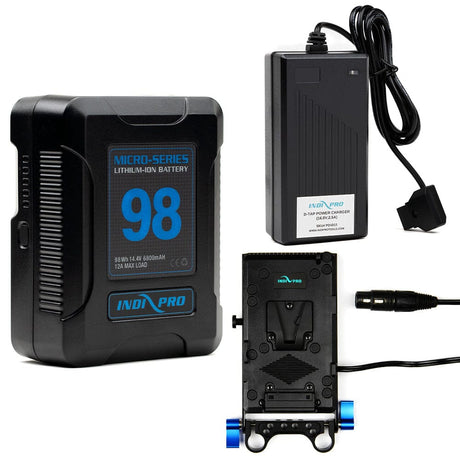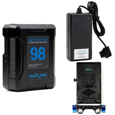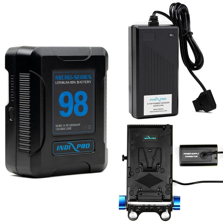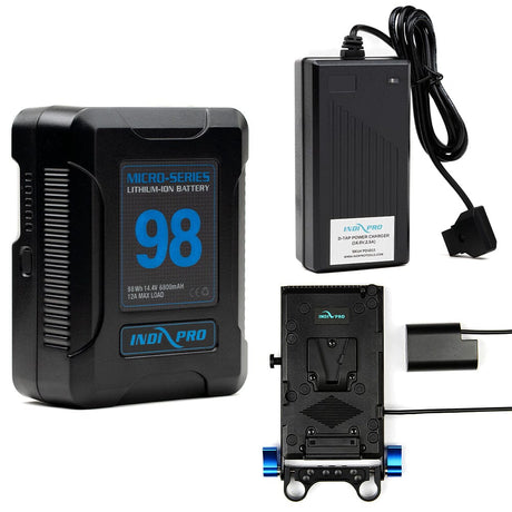 Indipro Micro Series 98Wh V-Mount Battery, Charger & V-Mount Plate with D-Tap Outputs Bundle