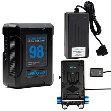 Indipro Micro Series 98Wh V-Mount Battery, Charger & V-Mount Plate to Sony NP-FZ100 Battery Bundle