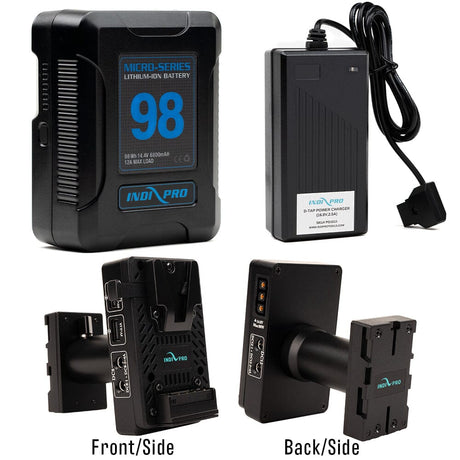 Indipro Micro Series 98Wh V-Mount Battery, Charger & V-Mount to BP-U Converter Bundle