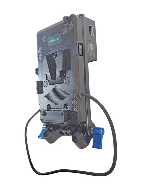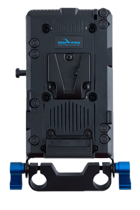 Indipro V-Mount Battery Plate with D-Tap Outputs and 15mm Rod Mount