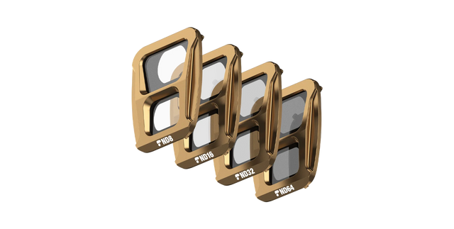 The Shutter Collection 4-pack of neutral density filters for the DJI Air 3 allows pilots to reduce shutter speeds to cinematic levels. The set includes four essential filters; an ND8, ND16, ND32, and ND64 — providing enough stopping power for any lighting situation. Custom-engineered with a lightweight aerospace aluminum frame to ensure easy installation and correct gimbal compatibility. Hallmarked with our industry-leading CinemaSeries™ glass, each filter is constructed to last and backed by our AdventureAssurance™ guarantee.