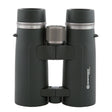 The commitment to quality that is evident in the optics is also reflected in the construction of Bresser’s Everest Binoculars. The roof prism layout makes for a slender design that is easy to manipulate for proper eye distance. The user’s thumbs can settle perfectly into contoured indentations that are positioned for optimal support, while sleek rubber armor protects the device and makes it easy to grip. The central focusing wheel rotates smoothly and is textured to facilitate subtle adjustments. Twist-up eyecups guard against stray light and are especially useful for those who wear glasses. Located near the right eyepiece, the diopter adjustment wheel clicks easily into place to ensure that both eyes achieve proper focus. Instructions are included for adjusting these settings.