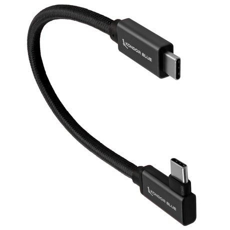 Right Angle 8.5" USB-C Braided Cable for 8K Data and Power Delivery