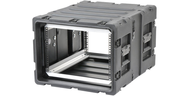 3RS-7U24-25B 7U SKB Static Shock Rack (24 RD) is lightweight, shockproof, watertight, dustproof, heat and chemical resistant, perfect for protecting your sensitive electronic equipment. SKB's new 3RS Series is molded of LMDP Linear Medium Density Polyethylene plastic that meets or exceeds MIL-STD-810G standards and includes 8 elastomeric shock absorbers whick allows a standard payload range of 40 to 150 pounds. Optional extended payload range of 160 to 300 pounds can be accommodated as a special order option. The 3RS Series Removable Racks are 24" deep from rail to rail with a standard 19" rack width per ANSI/EIA-310-C specification and feature square-hole rack rails to accomodate either #10-32 US standard, or 6mm International standard cage nuts which are supplied with the case.