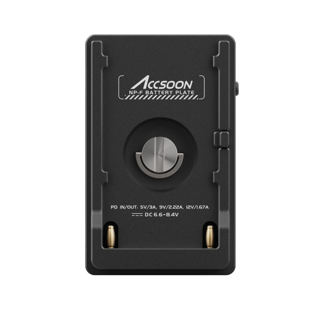 The removable Accsoon ACC04 NP-F battery plate adapter is compatible with Sony NP-F type batteries and can be used with the Accsoon iPad PowerCage II or PowerCage II Pro, as well as solely via a 1/4"-20 inch screw mount to power your iPad or other gear.