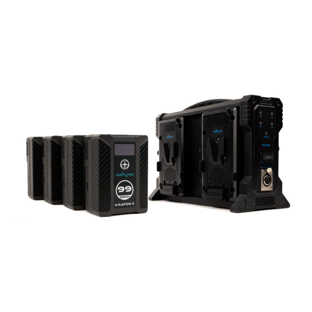 Indipro 4x Kratos 99Wh V-Mount Li-Ion Batteries and Quad V-Mount Battery Charger Kit