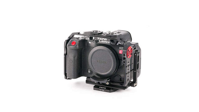 This Camera Cage offers enhanced protection for the Canon R5C while expanding mounting options for various camera accessories.