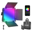 - Consist of 660pcs SMD LED beads (170pcscool/170pcs warm/320pcs RGB beads), Bi-color can adjust the color temperature from 3200K to 5600K, RGB can adjust the hue output from 0°to 360° and color saturation from 0% to 100%