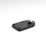 ARRI 3/8-16 to M4x20mm Offset Adapter is a grid of M4 holes spaced 20mm apart with a 3/8-16 screw and locating pins in ARRI spacing. Locating pins can be removed and repositioned if needed.