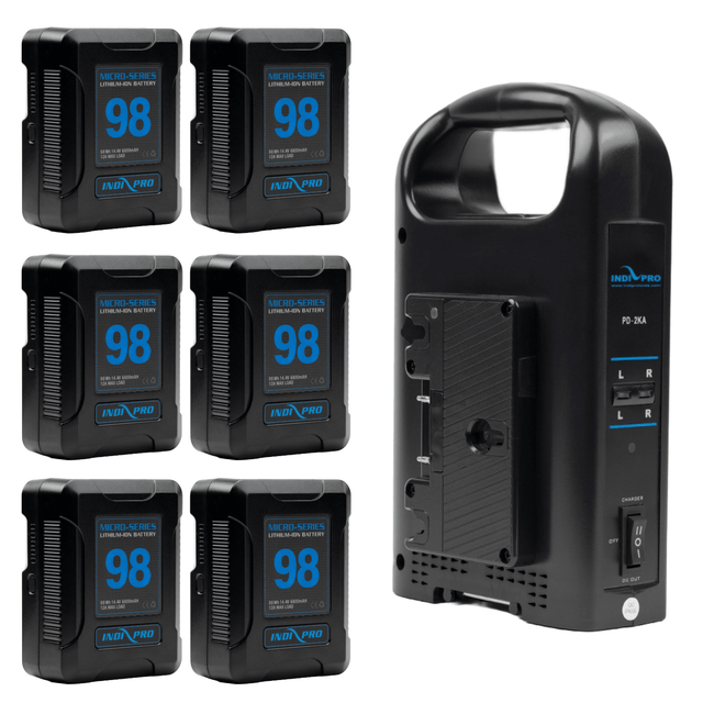 Indipro 6x Micro-Series 98Wh Gold Mount Li-Ion Batteries and Dual Gold-Mount Battery Charger Kit