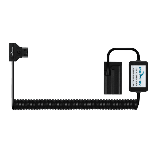 The Indipro Coiled D-Tap Power Cable to Sony L-Series (NP-F) Dummy Battery (24-36", Regulated) allows you to powerNP-F devices from any power source with a D-Tap input. When relaxed, the cable is 24" long and stretches to 36" long when you need the additional length. It supports an input voltage range of 11 to 19V, and it outputs a power-regulated 8V. This cable features inline regulation that produces no heat and cause no video noise in the camera.