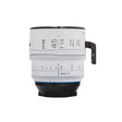 Irix Cine Lens 45mm T1.5 White for PL-mount Imperial The Irix Cine 45mm T1.5 Limited Edition White for PL-Mount is designed to meet the needs of both beginning and professional cinematographers seeking to craft cinematic masterpieces. This lens embodies functionality, delivering stunning visuals and exceptional performance in any environment. Its focal length closely mirrors the natural field of view of the human eye, offering an immersive and authentic perspective to captured scenes. Furthermore, its beautiful bokeh and ultra-low focus breathing capabilities empower filmmakers to explore new dimensions in film image creation. The Irix Cine 45mm T1.5 is a 43,3mm Full Frame lens, covering Full Frame 35, Super 35, Red Dragon 6K, Arri Alexa, APS-C, MFT, Super 16, Sony Venice and other sensors. It's so versatile it'll fit YOUR favorite equipment allowing you to enjoy every second of shooting with the tools you already love. /Put our Irix Cine 45mm T1.5 to work and enjoy the comfort and functionality it offers. Available in the most popular industry mounts: Canon RF, Canon EF, Sony E, Nikon Z, Leica L, Olympus / Panasonic MFT and Arri PL-mount, this superior cine lens is ready for action! Rain or shine. The rugged and durable construction of the Irix Cine 45mm guarantees that you can keep working with whatever the weather throws at you. The lens is resistant to rain, sand, and dust thanks to the internal seals on strategic places. Take it with you on your next adventure in the desert or the jungle, if your camera can handle those environments. Engraved markings on the lens have been filled with UV Light-reactive paint, which makes filming in difficult lighting conditions much easier. All you'll need is a small UV Blacklight instead of a bright flashlight.