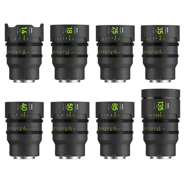 NiSi ATHENA PRIME Full Frame Cinema Lens MASTER Kit with 8 Lenses 14mm T2.4, 18mm T2.2, 25mm T1.9, 35mm T1.9, 40mm T1.9, 50mm T1.9, 85mm T1.9, 135mm T2.2 + Hard Case (E Mount | No Drop In Filter)