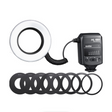 Compatible with DSLR cameras with a hot shoe, the ML-150 II Macro Ring Flash from Godox illuminates your subject with soft, nearly shadowless light that reveals every detail. The ring light consists of two components: a controller, which slips into your camera's hot shoe, and the ring flash, which mounts on your lens. Godox includes 49, 52, 55, 58, 62, 67, 72, and 77mm adapter rings to insure wide compatibility. The control unit is the brain and power pack of the system. The manual unit can regulate light intensity in 11 steps and recycles in 0.1 to 2 seconds and runs on four AA batteries that give you 300 to 1000 flashes.