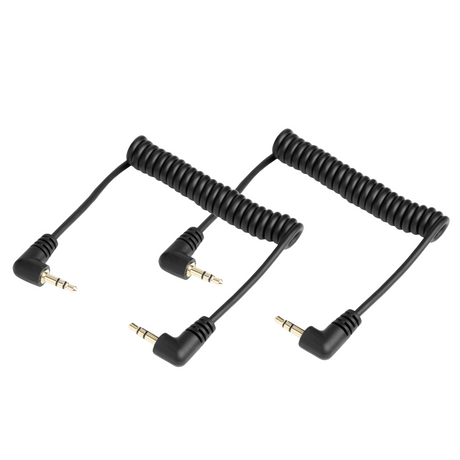 SR-CS350 2-Pack of 6” Right-Angle Coiled 3.5mm TRS Cables for Wireless, Microphones, Mixers & More