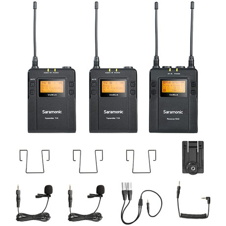 UwMic9 RX9+TX9+TX9 2-Person Wireless UHF Lavalier Mic System with Portable Camera-Mountable Receiver