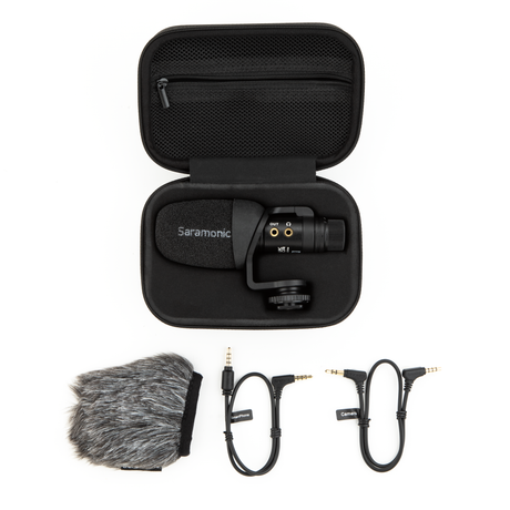 Vmic4 Dual-Capsule AAA-Powered On-Camera Mic w/ HP Out, Mic In, Furry Windscreen, TRS & TRRS Cables