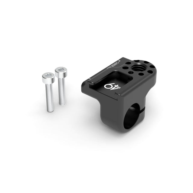 15mm Rod to Hot Shoe / Canon Microphone Mount clamps to a 15mm rod and provides a combination hot shoe, ARRI 3/8-16, M4x20, and Canon mic hole pattern for attaching the original microphone shock mount that comes with the Canon C70, C80, C400, C300mkIII, and C500mkII.