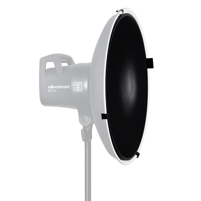 The Elinchrom Accessory Holder for 21 cm Reflector fits onto the front of the reflector and accepts a complete system of attachable accessories such as grids, filters, diffusers, and barndoors. Their design allows different accessories to be used together. For example: to produce spots of colored light, gels can be used in conjunction with honeycomb grids and then barndoors can be used to avoid flare. The Accessory Holder is repositionable, not rotatable.