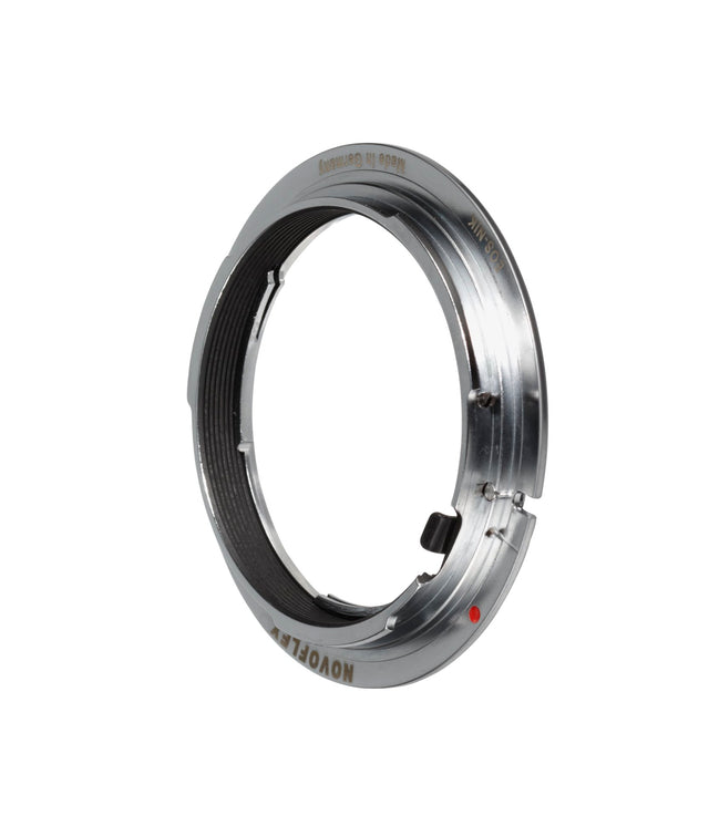 The Nikon Lens to Canon EOS Body Lens Mount Adapter from NOVOFLEX allows a Nikon lens to be mounted to a Canon EOS SLR camera. Although the lens will fit physically, automatic diaphragm (AE metering), or any other functions are not retained using this adapter. In this case you will need to meter in "stop-down mode" since the lens does not have the ability to have its aperture controlled by the camera body.