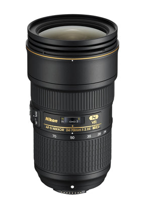 Super steady and always ready, the AF-S NIKKOR 24-70mm f/2.8E ED VR workhorse is prepared to take your work to the next level. With up to 4 stops* of VR (Vibration Reduction) image stabilization, you can capture sharp, steady handheld stills and HD videos, and shoot at slower shutter speeds in low-light situations without sacrificing sharpness. Pair it with a Nikon full-frame high-resolution DSLR to capture the decisive moment with a thrilling balance of sharpness and soft blur effects. Covering the sweet spot of the zoom range with a fast f/2.8 constant aperture, you'll be ready for everything from environmental portraits, studio photography, landscape, architecture (exteriors and interiors), press events and weddings.