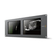 Blackmagic SmartScope Duo 4K SmartScope Duo 4K looks like a SmartView Duo but adds independent waveform monitoring so you can select between waveform, vectorscope, RGB parade, YUV parade, histogram and audio phase level displays. Each monitor is independent so can display any combination of scope or picture view! Connections SDI Video Input Automatically switches between SD, HD and 6G-SDI. Reclocked loop through output. SDI Video Output 1 x 10 bit loop through SD, HD and /6G-SDI switchable. SDI Audio Input 16 channels embedded in SD, HD and UHD. SDI Audio Output 16 channels embedded in SD, HD and UHD. Multi Rate Support Standard definition SDI, high definition SDI and 6G-SDI. Tally 9-pin D connector Standards SD Format Support 525i29.97 NTSC, 625i25 PAL HD Format Support 720p50, 59.94, 60 /1080p23.98, 24, 25, 29.97, 30, 50, 59.94, 60 /1080PsF23.98, 24, 25, 29.97, 30 /1080i50, 59.94, 60 2K Format Support 2K DCI 23.98p, 2K DCI 24p, 2K DCI 25p /2K DCI 23.98PsF, 2K DCI 24PsF, 2K DCI 25PsF Ultra HD Format Support 2160p23.98, 24, 25, 29.97, 30 SDI Compliance SMPTE 259M, SMPTE 292M, SMPTE 296M, SMPTE 372M, SMPTE 424M Level B and SMPTE 425M. Audio Sampling Television sample rate of 48KHz Video Sampling 4:2:2 and 4:4:4 Color Precision 8-bit Color Space YUV and RGB Computer Interface USB 2.0 for software updates and Ethernet for configuration Colorspace Conversion Hardware based real time. Scopes Luminance Waveform, Vectorscope, RGB Parade, YUV Parade, Histogram, Audio phase and level. Software Software Included Configuration utility for MAC and Windows. Internal Software Upgrade Via included firmware updater software. Physical Installation 3RU Operating Systems Mac 10.15 Catalina, /Mac 11.1 Big Sur or later. Windows 10, 64-bit. Power Requirements Power Supply 12V universal power supply included with international socket adapters for all countries. Power Consumption < 20 Watts Operational Voltage Range 12V - 15V Physical Specifications Environmental Specifications Operating Temperature 0° to 40° C (32° to 104° F) Storage Temperature -20° to 45° C (-4° to 113° F) Relative Humidity 0% to 90% non-condensing What's Included SmartScope Duo 4K Power Supply Welcome wallet with QR code for software download Warranty 12 Months Limited Manufacturer's Warranty.