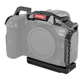 SmallRig Camera Cage for Canon EOS R5 and R6 2982 maintains access to the camera's controls and features a variety of mounting options. In addition to the built-in NATO rail on the top, one cold shoe mount, and multiple 1/4"-20 and 3/8"-16 threaded holes, this formfitting aluminum cage features several ARRI-style mounts for preventing accessories from twisting when mounted on the cage. The cage also incorporates two anti-twist pins on the base plate in addition to the 1/4"-20 camera mounting screw so your camera can't move around in the cage.
