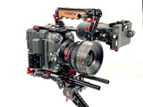 Top plate - The Top Plate has a built in Z-Rail perfect for adding the Zacuto Tactical Handle. Or if desired, you can reattach your Canon Handle to the plate. The Zacuto top handles give you the ability to quickly slide your handle back and forth to achieve perfect balance. The top plate has a multitude of ¼ 20 and ⅜ 16 screw holes for mounting various accessories. At the back of the plate is a 15mm rod port for a Zamerican arm or other 15mm accessory