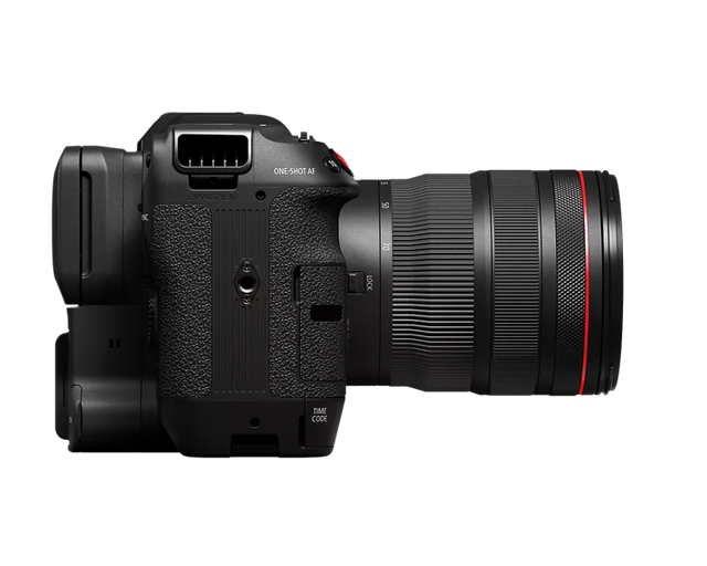 The EOS C70 includes a time code input/output terminal in the lower front of the body that makes synchronizing easier in multi-camera productions.