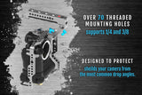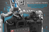 - Multiple Points of Contact: Cage remains solidly mounted to the camera to prevent wiggle and allow for large setups.