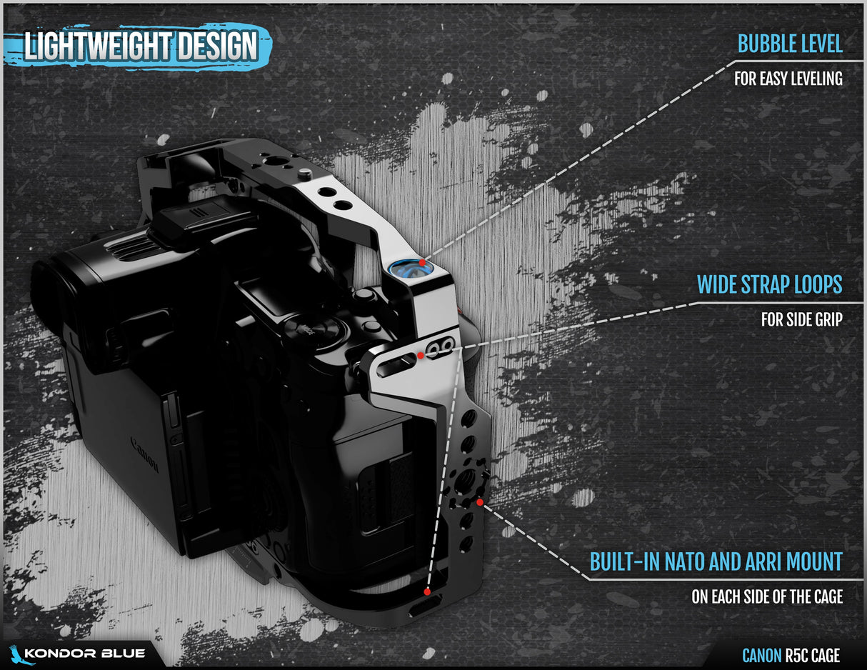 The Canon R5C cage is built for versatility and ease of use for productions of any size. Be sure to explore all of the Kondor Blue ecosystems as it will further enhance all of the features of this one-of-a-kind cage.
