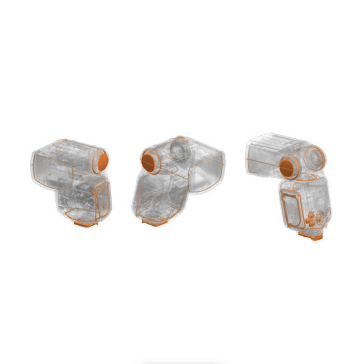 • Maximum guide number of 197' at ISO 100 and 200mm (76Ws)