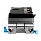 • Battery Plate also features two 15mm rod connectors, allowing you to mount it to an existing rig via two blue locking levers. 15mm rods are sold separately.
