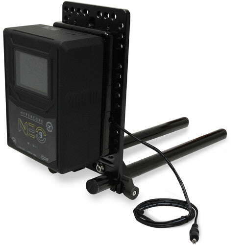 The battery plate provides a 4-pin LEMO-type output cable that measures 18" in length, and it also features a D-Tap output to power additional devices. Both outputs provide 11 to 17 VDC output power to your devices. In addition to the mounting threads, the plate can also mount onto your rig via an integrated 15mm LWS rod clamp on the bottom. Attached on the back of your rig, it can also be used as a counterweight.