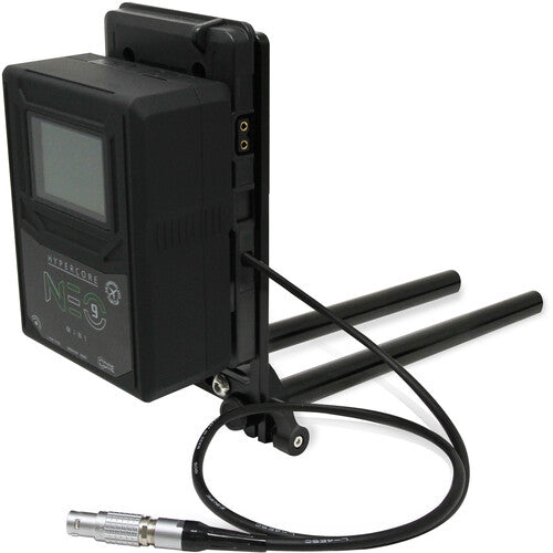 The battery plate provides a 2-pin LEMO-type output cable that measures 10" in length, and it also features a D-Tap output to power additional devices. Both outputs provide 11 to 17 VDC output power to your devices. In addition to the mounting threads, the plate can also mount onto your rig via an integrated 15mm LWS rod clamp on the bottom. Attached on the back of your rig, it can also be used as a counterweight.