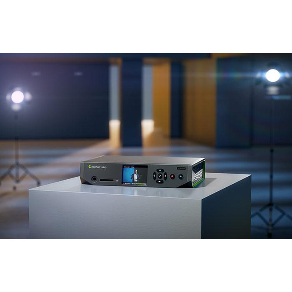 Use Pearl Nano’s front screen for basic configuration and control, jump into the browser-based interface or local console to access all the features this small but mighty encoder has to offer, or centralize configuration and monitoring with Epiphan’s cloud-based platform.