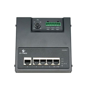 EtherWAN Hardened Unmanaged 4-Port Gigabit PoE & 1-Port Gigabit RJ45 Ethernet Switch High-Power PoE - Up to 30W 120W PoE Power Budget Hardened-Grade for Non-Ventilated & Harsh Environments EtherWAN's EX41941F is a compact hardened unmanaged flat form factor PoE switch which can be wall or DIN-rail mounted. 4 gigabit PoE ports provide up to 30W output per port with a PoE power budget of 120W, ensuring that the maximum possible power is delivered to every device at all times. 1 RJ45 uplink port provides flexibility for data transmission and cascading. The EX41941F provides the power required to support various security and other network applications, along with flexibility, speed, and reliability to support networks
