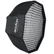 Compatible with all Godox flash heads that have Bowens front accessory mounts, this Octa Softbox with Bowens Speed Ring and Grid from Godox measures 47" and provides a soft, pleasing quality of light. The softbox has a large surface area to offer a wraparound effect, especially when used close up. This shape produces natural-looking catchlights in the eyes of your subject. The included fabric grid mounts to the softbox with touch-fasteners and provides directional control of the output, keeps light from the background, and allows you to light specific areas of the subject.