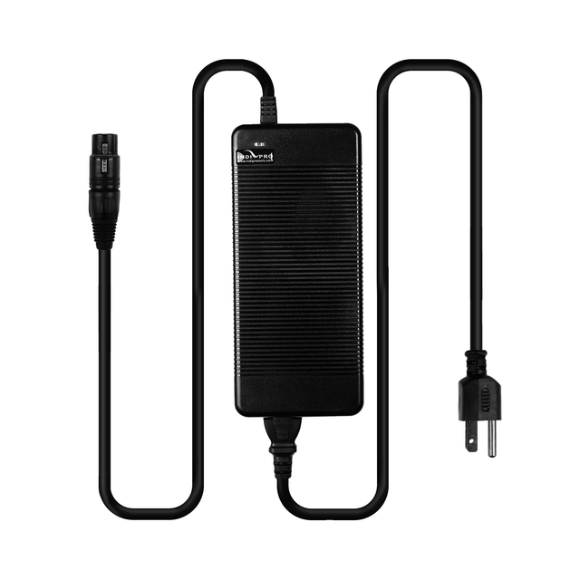 The Indipro 15V AC Power Supply to 4-Pin Neutrik XLR Female Connector (20A, 10') features a standard US AC power cord that operates on AC current from 100 to 240V. The power supply converts the AC input to 15 VDC current at 20A. The 10' long cord terminates with a 4-pin female XLR connector for direct connectivity to the device you intend to power.