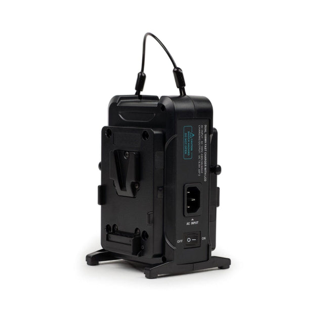 Charge two V-mount batteries simultaneously with the Indipro Dual V-Mount Intelligent Battery Charger. Its intelligent interface identifies the battery's capacity and selects the appropriate charging current. Batteries under 100Wh are charged at 3A and batteries over 160Wh at 6A. Any batteries that fall within the 100 to 160Wh range are charged at 4.5A.