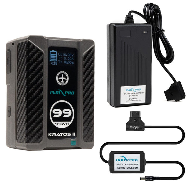 Indipro Kratos 99Wh V-Mount Battery, Charger & D-Tap for Atomos Recorders/ Monitors Bundle