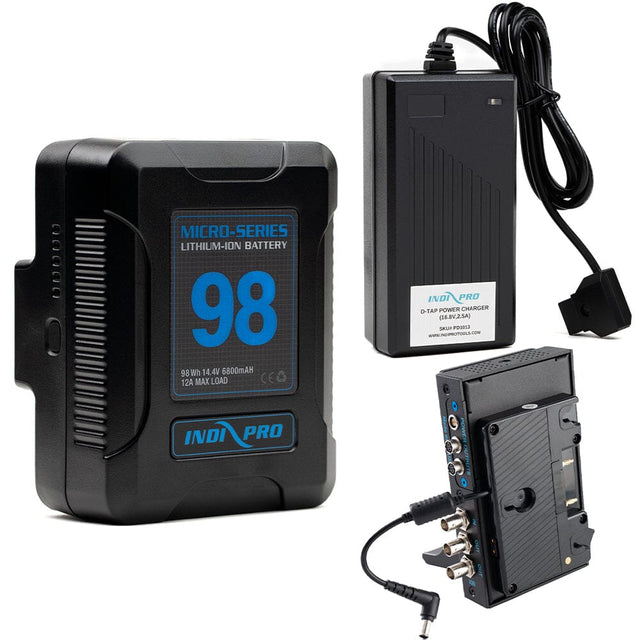 Indipro Micro Series 98Wh Gold Mount Battery, Charger & Gold Mount Nitro Plate to Sony PXW-FX9 Bundle