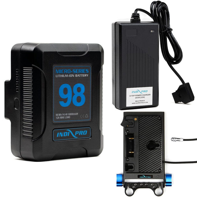 Indipro Micro Series 98Wh Gold Mount Battery, Charger & Gold Mount Plate for BMPCC 4K/6K Bundle