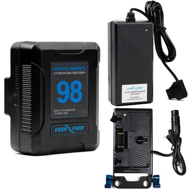 Indipro Micro Series 98Wh Gold Mount Battery, Charger & Gold Mount Plate to 4-Pin XLR Connector Bundle