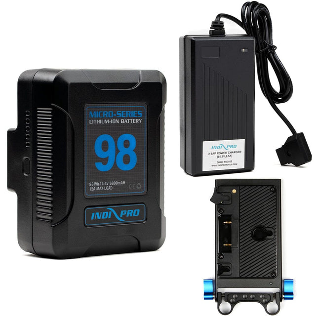 Indipro Micro Series 98Wh Gold Mount Battery, Charger & Gold Mount Plate with D-Tap Output Bundle