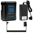 Indipro Micro Series 98Wh V-Mount Battery, Charger & Braided Coiled D-Tap to Canon LP-E6 Battery Bundle