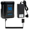 Indipro Micro Series 98Wh V-Mount Battery, Charger & Braided Coiled D-Tap to Panasonic DMW-BLK22 Battery Bundle